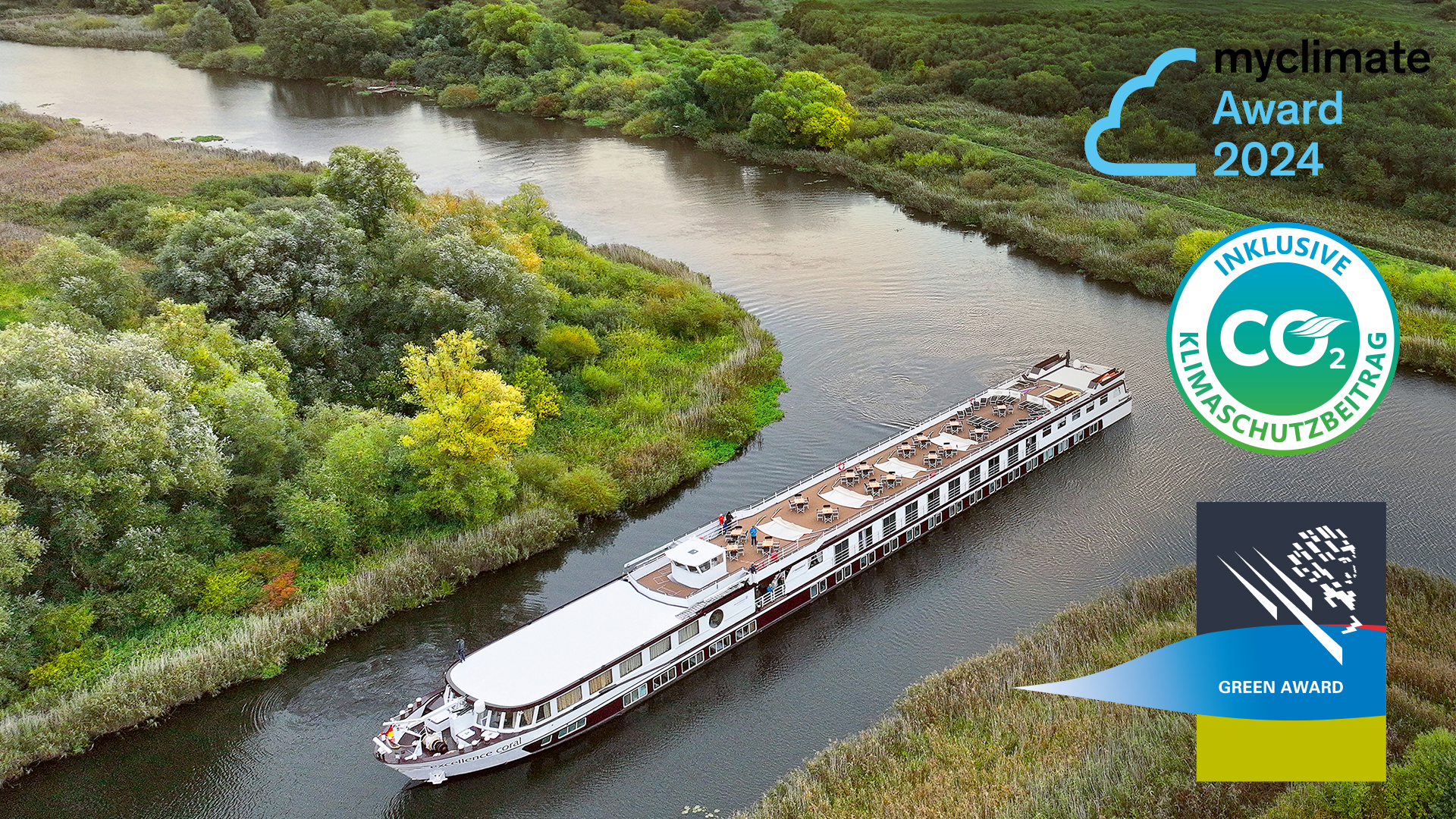 Die Excellence-Flotte setzt seit Jahren neue Massstäbe im umweltbewussten Reisen: Sie wurde bereits sieben Mal mit dem renommierten Green Award und zwei Mal mit dem Myclimate-Award ausgezeichnet – als echter «Industriepionier für ganzheitlich nachhaltige Flussreisen». Damit ist Excellence Europas grünste Flotte, die mit innovativer Technik wie der einzigartigen Clean Air Technology den Schadstoffausstoss deutlich reduziert. Mehr erfahren Sie hier.